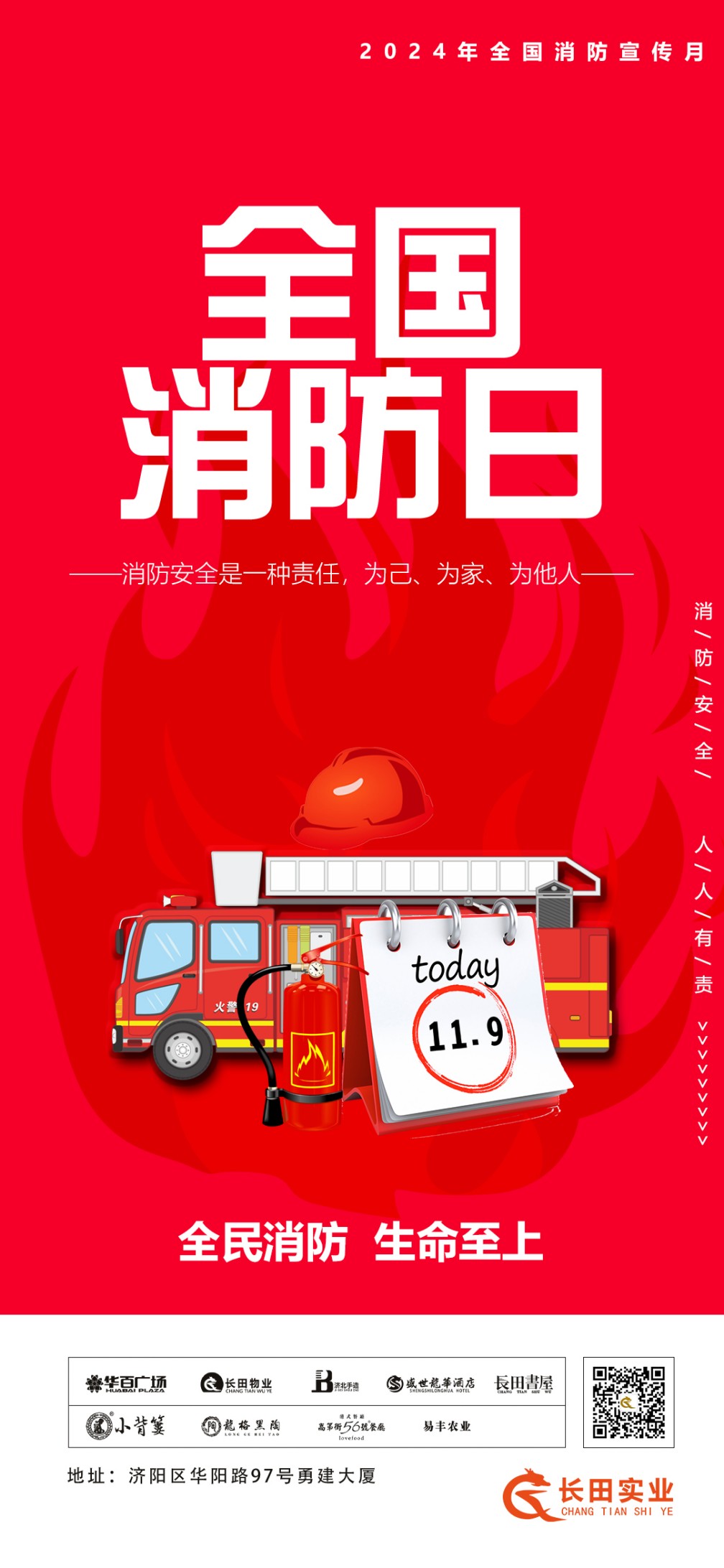 今年11月9日是第33個(gè)全國消防日,國務(wù)院安委會辦公室定于11月份在全國開展消防宣傳月活動,活動主題為全民消防、生命至上。