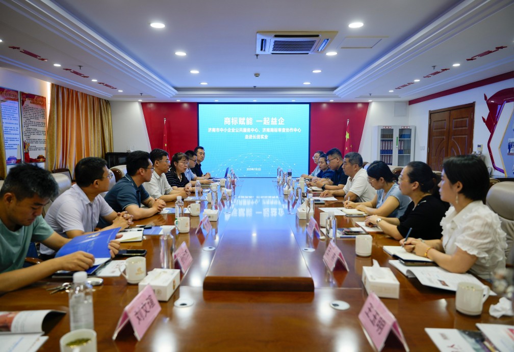 7月2日上午,濟南市中小企業(yè)公共服務中心、濟南商標審查協(xié)作中心走進長田實業(yè)舉辦“商標賦能 一起益企”公益咨詢服務活動,旨在提供專業(yè)的商標知識指導與精準的咨詢服務,助力企業(yè)提升商標品牌意識,增強商標運用與保護能力。山東省市場監(jiān)督管理局知識產權促進處二級調研員王華偉、濟南市中小企業(yè)公共服務中心專職副書記陳炳亮、濟南商標審查協(xié)作中心副主任宮衛(wèi)清等領導出席活動。長田實業(yè)黨支部書記、董事長張勇參加活動。同時,張總作為濟北街道商會會長還組織了濟北街道商會的會員單位前來交流學習。